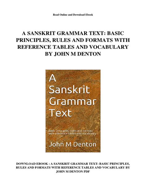 Download A Sanskrit Grammar Text: basic principles, rules and formats with reference tables and vocabulary PDF Internet Archive